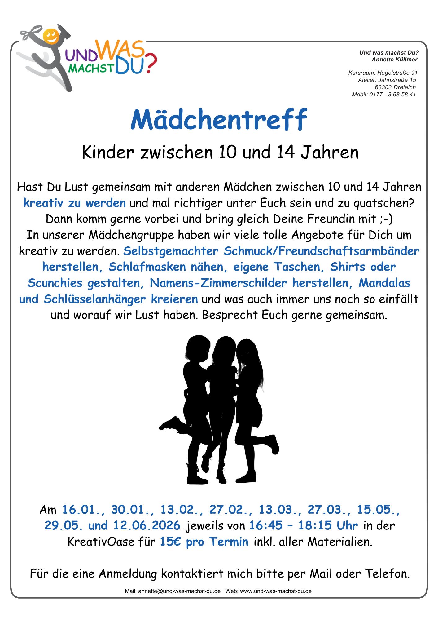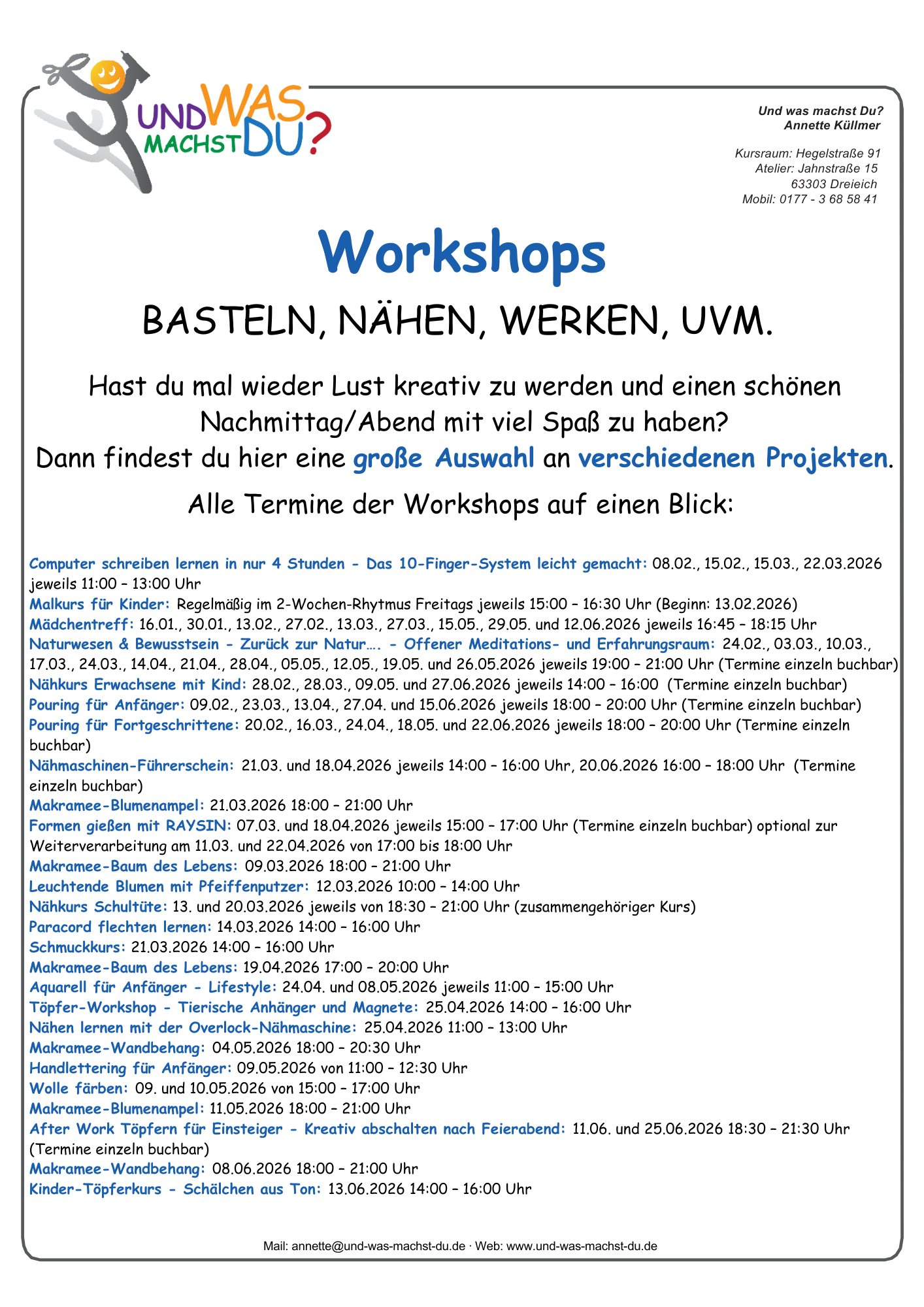 Dies ist das Übersichtsprogramm für alle Angebote von Februar 2026 bis Ende August 2026, für die einzelnen Angebote bitte weiter runter scrollen.